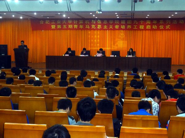 2012年4月16日晚7点,由必赢bwin线路检测中心官网学生团总支主办的庆祝共青团建团90周年系列活动暨第五期青年马克思主义者培养工程启动仪式在翡翠湖校区图书馆报告厅拉开帷幕。